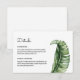 Esta tarjeta de "detalles" incluida le permite personalizar completamente la información adicional que necesita transmitir a sus invitados sobre su evento: ubicaciones, información de recepción, dirección del sitio web de la boda y más. Las hojas de plátano de acuarela de inspiración vintage establecen el tono para su evento de verano o tropical moderno de mediados de siglo. Estos son perfectos para una boda en la playa o en un destino, ducha, fiesta en la playa, fiesta de verano o evento corporativo tiki. Compre toda la colección en mi tienda zazzle. Personalice o edite más haciendo clic en el enlace "personalizar más" y use la herramienta de diseño para modificar esta plantilla. Todo el estilo de texto, colores y tamaños se pueden modificar para adaptarse a sus necesidades. ¿Necesita ayuda para personalizar? ¡Envíeme un mensaje!