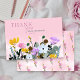 Tarjeta de agradecimiento Prado de flores silvestres que puedes personalizar y utilizar para cualquier ocasión. El diseño tiene un borde floral de flores silvestres en rosa, lila, amarillo y azul y se asienta sobre un bonito fondo rosa con suave neblina de lavado de acuarela blanca. Perfecta para baby showers de flores silvestres, despedidas de soltera, cumpleaños, etc. Si deseas productos coincidentes, por favor, busca en mi colección Jardín de flores silvestres o envíame un mensaje para agregar las plantillas de diseño que necesitas.