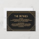 Eleva los detalles de su boda con esta tarjeta de oro y negro de Boda Art Deco de moda, adornada con un elegante monograma y acentos geométricos clásicos. Esta tarjeta combina la sofisticación atemporal con un toque personalizado, perfecto para compartir información esencial con sus huéspedes