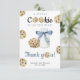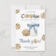 ¡Hay Una Pequeña Cookie En Camino! Fiesta de ducha de bebé color agua. Galletas de color de agua con chocolate y leche de botella con arco azul.