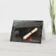 Esta tarjeta de verduras dobladas tiene una fotografía de una gorra, un vestido y un papel enrollado con una cinta roja. El frente dice gracias, y el interior puede ser personalizado con su propia declaración y cierre.