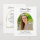 Esta magnífica tarjeta de agradecimiento de simpatía muestra su foto como punto focal dentro de un arco encantador rodeado por un marco dorado. Encima de tu foto están las palabras: "Gracias por tu simpatía". El nombre y las fechas de su ser querido aparecen debajo de la foto. Al revés, encontrarás un encantador agradecimiento por tu verso de simpatía dentro de un arco. Encima del arco, están las palabras, "Para siempre en nuestros corazones". Este es un increíble agradecimiento por su tarjeta de simpatía. Solidaridad con los derechos de autor Gracias Cartas de Kathy Henis