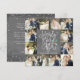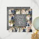 Difunde el amor y muestra tus fotos de boda esta temporada de fiestas con esta tarjeta de felicitación elegante y moderna con un collage de fotos de recién casados en vacaciones. Perfecta para que la pareja recién casada la use como anuncio de boda o tarjeta de agradecimiento durante las fiestas. Esta tarjeta hace buen uso de tus hermosas fotos de boda al presentar una cuadrícula única y sin fisuras de 12 fotos en collage, combinada con una tipografía blanca festiva sobre un fondo de pizarra que dice "Merrily Ever After" y nuestro acebo pintado a mano con acuarela. En la parte posterior, agrega tu propio mensaje personalizado, que se destaca por un marco divertido de nieve o copos de nieve.