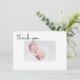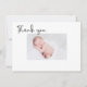 Personalizado con la foto del bebé en la parte delantera y el mensaje especial en la parte trasera. Este diseño utiliza un elegante tipo de letra manuscrita para un toque de sofisticación. Expresar su gratitud a los que asistieron al bautismo de su hijo.