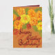 Elevar cualquier celebración de cumpleaños con esta encantadora tarjeta de color otoño con flores de octobers de marigoles y cosmos. Su diseño atemporal añade un toque de belleza natural a las festividades, lo que hace una elección ideal para transmitir los sentidos deseos de cumpleaños y alegría en su día especial.
