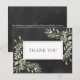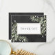 Tarjeta de agradecimiento de primavera con hojas en pizarra. Con delicadas hojas de acuarela que enmarcan su mensaje de agradecimiento en un texto elegante. Puede personalizar con su propio mensaje de agradecimiento y nombre en el reverso o, si lo prefiere, agregar su propio mensaje escrito a mano eliminando el texto. Una excelente manera de mostrar su agradecimiento a sus clientes y consumidores. Perfecta para una amplia gama de negocios, incluyendo; esteticistas, terapeutas de belleza, cosmetólogos, estilistas, salones de uñas, artistas de cabello y maquillaje, venta al por menor y spas.