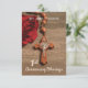 Un crucifijo rosario de madera se ve al lado de una bella rosa roja. Bonita tarjeta para celebrar con un sacerdote en su primer aniversario de la Ordenación. Con un tamaño de 3,5 x 5, será un hermoso recuerdo para que todos celebren un aniversario de ordenación —nombre y fecha de personalizable.