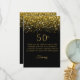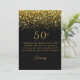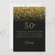 Esta es una tarjeta de agradecimiento con temática negra y dorada para una celebración de 50 años. Presenta un diseño de confeti dorado brillante en la parte superior, un texto dorado opulento y detalles personalizados. La tarjeta de agradecimiento da una impresión formal pero festiva. ¡Personalización disponible!