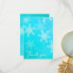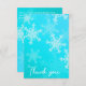 Una tarjeta de agradecimiento encantadora y moderna para una fiesta de bebé con tema navideño, que presenta un fondo suave de color azul pastel adornado con delicados copos de nieve blancos. Los intrincados copos de nieve, diseñados con detalles finos y parecidos a encaje, cubren la superficie de la tarjeta, añadiendo un toque de elegancia y fantasía. Las palabras "Gracias" están escritas en una elegante escritura fluida en la parte superior de la tarjeta, ofreciendo un toque personalizado. El nombre de la familia se incorpora elegantemente en el diseño, complementando el patrón de copos de nieve. Este diseño versátil no solo es perfecto para fiestas de bebé, sino que también es adecuado para otras ocasiones como cumpleaños, bodas o felicitaciones navideñas. El estilo general es cálido y acogedor, con un sutil toque inspirado en las fiestas, lo que lo hace ideal para expresar gratitud