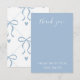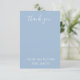 Elegantes y sinceras, estas tarjetas planas de agradecimiento son el toque final perfecto después de la celebración de su despedida de soltera. Con un fondo suave de color azul polvoriento y letras en escritura blanca chic, la parte delantera dice "gracias" en una fuente de caligrafía fluida, complementada con el texto clásico serif "De la futura Sra. Smith", personalizado con su próximo apellido.