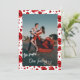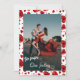 Personaliza completamente esta tarjeta de foto El día de San Valentín con tu propia foto en el frente con un guión blanco. con corazones rojos pequeños en el fondo de la foto. Utilice los campos de la plantilla proporcionada para personalizar el texto y la foto. Los nombres de la pareja están en el fondo "Haga clic en Personalizar más adelante" para cambiar los estilos de fuente o los colores.
