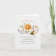 Este bonito diseño de una ducha con temática de otoño presenta elementos de acuarela de Halloween pintados a mano contra un fondo de pizarras de madera blanca. El ilustracion incluye una calabaza, un fantasma, un mago gorra, caramelos, estrellas, corazones y más! Una tarjeta de agradecimiento para igualar nuestro diseño "Little Boo Halloween Pumpkin Baby Shower". Vea la colección enlazada en esta página para ver artículos coincidentes o visite nuestra tienda para más diseños de ducha de bebé de Halloween.
