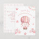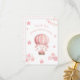 Dulce ilustracion en tonos rosa rubor, que representa a un conejito volando en un globo, globos pequeños, regalos y estrellas.Personalizar esta tarjeta de agradecimiento y añada su agradecimiento.