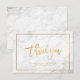 PixDezines tarjeta plana de agradecimiento, con moderno texto manuscrito cepillado en falso oro y fondo de losa de mármol blanco. El diseño se puede transferir a una "tarjeta de agradecimiento mini".