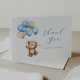 ¡Podemos esperar! Tarjeta de agradecimiento de Baby Shower con temática de Oso de Teddy que incluye un oso de peluche acuarela que vuela alto con globos azules y marrones. Personalizar con su información para que la mami lo sea. Haga clic en "hacer clic para ver más personalizar" para cambiar el estilo, tamaño o color de la fuente.