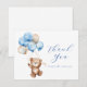¡Podemos esperar! Tarjeta de agradecimiento de Baby Shower con temática de Oso de Teddy que incluye un oso de peluche acuarela que vuela alto con globos azules y marrones. Personalizar con su información para que la mami lo sea. Haga clic en "hacer clic para ver más personalizar" para cambiar el estilo, tamaño o color de la fuente.