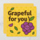 ¡Diga gracias de la manera más dulce con esta tarjeta "Grapeful for You"! Con adorables uvas sonrientes en un brillante fondo amarillo, este divertido juego de frutas es perfecto para expresar gratitud a amigos, familia, compañeros de trabajo o a cualquiera que merezca una sonrisa. Ideal para notas de agradecimiento, regalos de apreciación o momentos simplemente porque.
