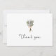 Dulce tarjeta de agradecimiento de ramo nupcial floral. Verdes botánicos y flores envueltos en un suave lazo rosa con hermosa caligrafía. Sentimiento en el reverso con pequeño corazón. Diseñado por Kimberly Brett.