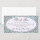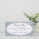 Bonito y elegante patrón vintage de flores azul claro sobre fondo gris. Sofisticada simpatía gracias tarjeta de foto con una etiqueta oval para tu texto. Todo es personalizable: puede cambiar fácilmente el texto (fuente, color, tamaño y posición) y el diseño (tamaño y posición) haciendo clic en el botón personalizar. Comportamiento Simpatía: gracias tarjeta de nota y etiqueta.
