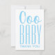 Muestra tu apreciación con estilo usando esta elegante carta de agradecimiento "Ooo BABY" en azul suave. Con el moderno diseño de "Ooo" en escritura y "BABY" en letra alta sans serif, esta tarjeta coincide con la invitación a la ducha de bebé para un aspecto cohesivo. La parte posterior de la tarjeta es azul sólido, complementando perfectamente las fuentes en la parte delantera. El interior está en blanco, proporcionando un amplio espacio para su mensaje personalizado de agradecimiento. Una forma encantadora y minimalista de expresar gratitud después de una ducha de bebé o por los regalos recibidos.