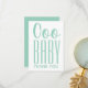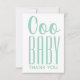 Muestra tu apreciación con estilo usando esta elegante carta de agradecimiento "Ooo BABY" en verde suave. Con el moderno diseño de "Ooo" en escritura y "BABY" en letra alta sans serif, esta tarjeta coincide con la invitación a la ducha de bebé para un aspecto cohesivo. La parte trasera de la tarjeta es un agua sólida, que complementa perfectamente las fuentes en la parte delantera. El interior está en blanco, proporcionando un amplio espacio para su mensaje personalizado de agradecimiento. Una forma encantadora y minimalista de expresar gratitud después de una ducha de bebé o por los regalos recibidos.