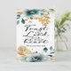 Una hermosa tarjeta floral con "Confía en el Señor con todo tu corazón" Proverbios 3:5 "Cuando la vida se siente incierta, y el camino por delante no está claro, recuerda— Dios camina contigo. Confiar no sólo en lo que se puede ver, sino en el que lo ve todo. Con Él, tu corazón encuentra paz, tus pasos encuentran propósito, y tu vida encuentra gracia", es la cita de la parte de atrás de esta tarjeta plana.