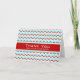 Felicita a sus empleados por su aniversario con su empresa con esta elegante y contemporánea tarjeta de aniversario de empleo feliz en un divertido patrón de chevron azul turquesa, rojo y blanco zigzag