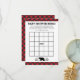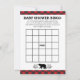 ¡Juega bingo en tu ducha de bebé con tema de leñador! Los invitados rellenan estas tarjetas bingo con los regalos que creen que la futura madre recibirá. Cuando ella abre sus regalos, marcan los artículos a juego. Este diseño presenta un lindo oso bebé con algunos bosques y un borde de manto de búfalo. La parte trasera de la tarjeta también es de manto de búfalo. La tienda también ofrece una invitación a la ducha de bebé coordinada.