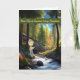 Tarjeta de campamento de verano para el nieto que está pescando en una zona boscosa con una alce linda vigilándolo. A lo lejos hay un arroyo que atraviesa los bosques, los bonitos y un edificio. Gracias a AI Technology y Creative Fabrica por algunos de los elementos del diseño. El segundo diseño sólo ha cambiado un poco la redacción.