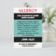 Agradecimiento Tarjeta de Chef de Alerta de Alergia Personalizada