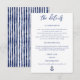 ¡Celebra tu amor con un toque de mar! Este precioso parque de bodas es perfecto para una celebración informal y formal de bodas costeros. Cuenta con un bonito fondo de rayas acuáticas que evoca los tranquilos tonos del océano. Enmarcado por un diseño rústico de cuerda, con nudo y ancla, captura perfectamente la esencia de atar un nudo y anclarse unos a otros en matrimonio. Ideal para una playa o un boda costero, esta invitación invita a sus huéspedes a unirse a usted para un día lleno de amor y alegría junto a las olas.