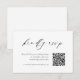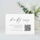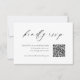 Presentamos la moderna tarjeta de código QR de la boda blanca y negra RSVP, una combinación perfecta de elegancia y elegancia refinada. Esta tarjeta presenta un código QR moderno para RSVPs sin esfuerzo, combinado con un diseño minimalista en blanco y negro que exuda sofisticación.