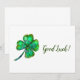 una colorida pintura acuática de un trébol de cuatro hojas de colores verde brillante para desear buena suerte en una tarjeta de felicitación