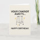 ¡Celebra envejecer con una risa! Esta divertidísima tarjeta de cumpleaños muestra a un caminante con la frase "Tu carro espera...", perfecto para burlarse del envejecimiento de una manera alegre. Un gran regalo de broma para amigos, compañeros de trabajo o familiares que aman un buen chiste en su cumpleaños. Añade un mensaje personal para hacerlo aún más divertido.