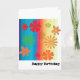 Diseño de tarjeta floral de cumpleaños con el fondo azul, rojo, naranja-amarillo de la pendiente. Le recuerda estar en una playa.
