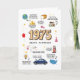 Celebra un hito de estilo con esta tarjeta de cumpleaños única que hace un viaje nostálgico de 1975! En el corazón del diseño, audaz y orgulloso, está el año "1975", rodeado de fascinantes hechos divertidos que le dan vida al pasado, como el mundo y la población estadounidense de ese momento, los precios promedio del gas, una hogaza de pan, una casa nueva e incluso los nombres de bebé más populares. Es más que sólo una tarjeta de cumpleaños, es una cápsula de tiempo deliciosa que enciende recuerdos, conversaciones y sonrisas. Es una manera perfecta y divertida de honrar su viaje y celebrar el mundo en el que nacieron. Dentro de la tarjeta de cumpleaños: ¡y muchos, muchos más!