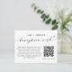 Esta Tarjeta de Descanso de Luna de Miel presenta caligrafía escrita a mano con un diseño minimalista moderno para solicitar respetuosamente un viaje de luna de miel en lugar de regalos tradicionales de boda. Añade tu código QR de la aplicación de efectivo y tu texto personalizar *most* para que se ajuste a tus necesidades. Los colores del texto son totalmente editables —> haga clic en el botón "Editar usando la herramienta de diseño" para editarlos.