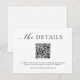 Tarjeta de detalles de sitio web de boda con código QR minimalista