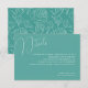 La tarjeta de invitación de boda Peony Elegance presenta una paleta audaz y moderna en turquesa y blanco con un arte lineal de peonías sofisticadas, creando un diseño llamativo y elegante. La combinación de estos colores añade un sentido de diversión, alegría y ambiente tropical, preparando el escenario para una celebración tan memorable como vibrante. Esta tarjeta es perfecta para parejas que desean abrazar el espíritu del verano de una manera divertida y animada. Minimalista y refinada, esta tarjeta encarna la sofisticación chic con un toque artístico. Perfecta para una celebración moderna y de alta gama.