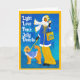 Hecho en un ilustracion de estilo Art Nouveau, esta mujer bien vestida de moda camina por su Doodle Dog igualmente bien vestido. Lleva una bolsa de compras de Hanukkah y sostiene una medusa en la mano. En el fondo se encuentra un paisaje urbano de arte deco con gentiles ráfagas de nieve cayendo. Esta tarjeta se puede comprar tal cual, o se puede personalizar con su propio mensaje y nombre.