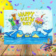 ¡Envíe a alguien esta linda tarjeta de ballena para desearle un feliz cumpleaños! Tres ballenas se han reunido en el mar azul para esta carta. Hay dos más grandes, izquierda y derecha, y uno más pequeño en el medio. Las dos grandes ballenas están escupiendo agua, haciendo que las fuentes soplen de sus agujeros. En la fuente de la ballena izquierda hay algunos regalos, en la fuente de la ballena a la derecha hay una torta de cumpleaños. Entre ellos la ballena pequeña está mirando hacia arriba, donde "Feliz Cumpleaños" está escrito en negritas letras dibujadas a mano amarilla.