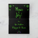 Delante: Cuatro ciervos coloridos en tonos magenta, rojo y azul se reúnen alrededor de un verde Personalizable de árbol de Navidad: "¡Feliz Navidad!" Arriba: Coloridas palabras de Personalizable en la esquina de copas de nieve: "Paz" "&" "¡Alegría!" Abajo: Pequeño gráfico de cuatro venados coloridos y un Personalizable de árbol de Navidad: "de" "Tus vecinos" "Maggie y Oliver"