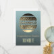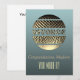 Este producto es una tarjeta de felicitación o saludo por el final exitoso de un proceso de divorcio. Es un regalo agradable de familiares, amigos y colegas para celebrar el final de un matrimonio. El diseño elegante presenta una bola de discoteca dorada con la palabra divorcio sobre un fondo gris teal y un texto personalizable "Felicidades, ... / ¡Lo lograste!".