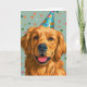 Celebra los momentos alegres de la vida con esta tarjeta de felicitación de la celebración de Golden Retriever. Con un alegre Golden Retriever en un colorido gorra fiesta rodeado de confeti festivo, esta tarjeta es perfecta para cumpleaños, fiestas y amantes del perro.