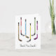 ¡Gracias entrenador de hockey! Una gran carta para agradecer a su entrenador de hockey. Esta carta presenta diferentes palos de hockey a color colgando encima de las palabras Gracias entrenador.