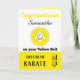 Diseño de felicitaciones personalizables amarillo brillante para tu hijo, u otro miembro de la familia o amigo que hizo su prueba de cinturón amarillo en Karate y obtuvo su promoción de cinturón. Diseñado para los estudiantes de Karate, el diseño presenta los caracteres kanji japoneses para Kara-Te y se pueden modificar muchos aspectos, incluyendo el nombre del destinatario, el estilo de karate y el arte marcial (hago productos para otras artes marciales). En el interior, puede cambiar todo el texto como desee. Y la parte posterior del diseño presenta un mensaje motivacional, y una cita de un famoso profesor de Karate. ¡Puede quitarlos o cambiarlos como desee!