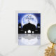 tarjeta de bienvenida eid mubarak con imagen de mezquita a la luz de la luna