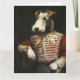 Esta gran tarjeta de saludo se ilustra con un Fox Terrier con uniforme militar victoriano.