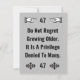 Las palabras de esta tarjeta de felicitación dicen "No se arrepienta de envejecer. Es un privilegio negado a muchos." 'La edad' y 'de quién' pueden ser personalizados.