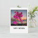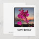 Fuchsia, orquídea rosa frente a la tarjeta de cumpleaños de la foto del atardecer.